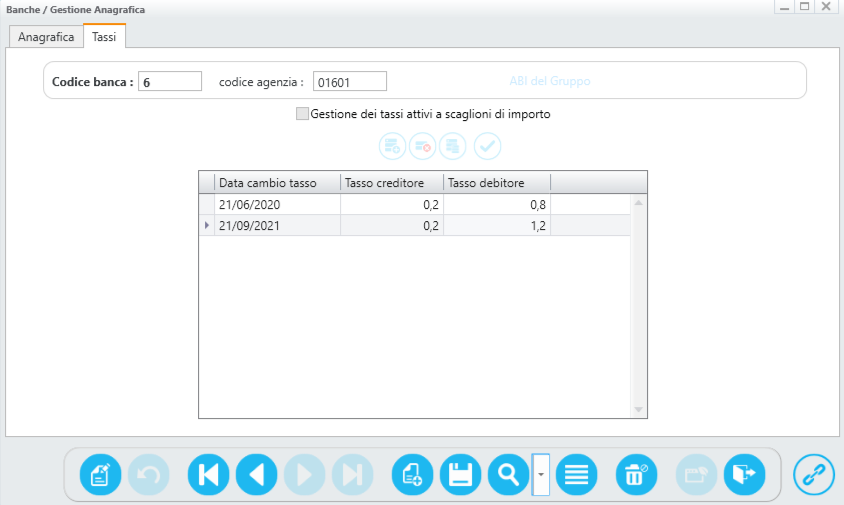 Gestione anagrafica banche - scheda tassi
