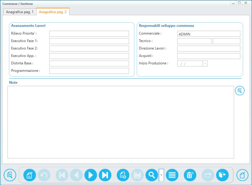 La scheda "Anagrafica pag. 2" permette di archiviare ulteriori informazioni inerenti la commessa.