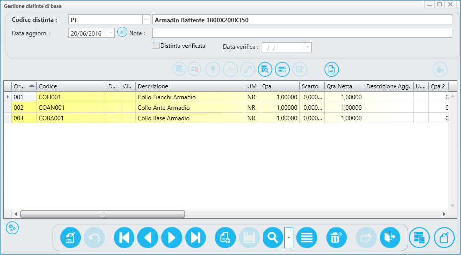 Alla creazione di una nuova distinta di base viene proposta automaticamente la data odierna.