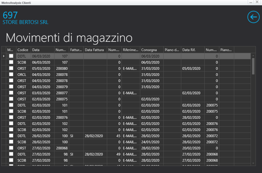 Nota: cliccando sulla check box presente nella prima colonna sarà possibile aprire il movimento di magazzino selezionato
