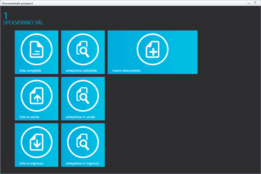 Apre la gestione del modulo documentale filtrando esclusivamente i documenti emessi e/o ricevuti dal prospect.