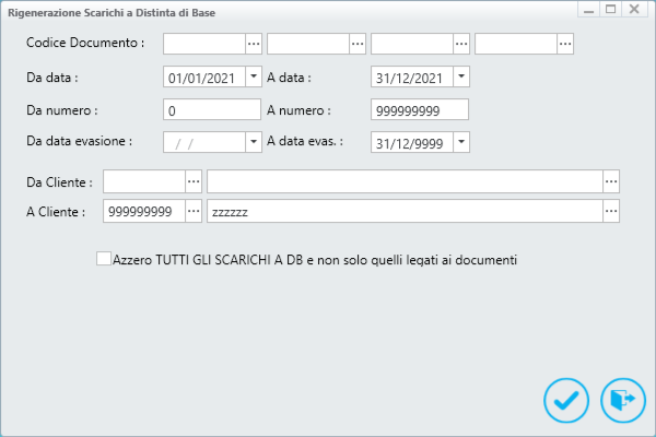 Se si attiva questa opzione saranno azzerati tutti gli scarichi a distinta di base inclusi nel range di periodo indicato e non solo gli scarichi a distinta di base legati ai movimenti di magazzino.